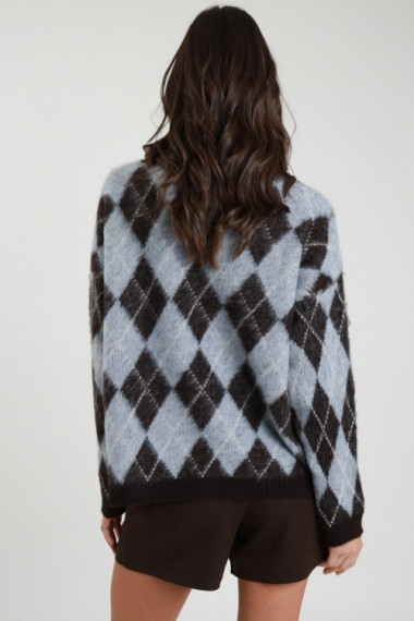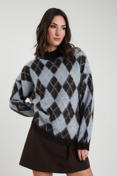 Maglione Girocollo Over a Rombi, Bordi a Contrasto.