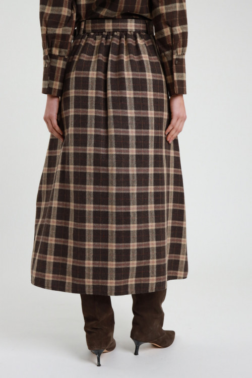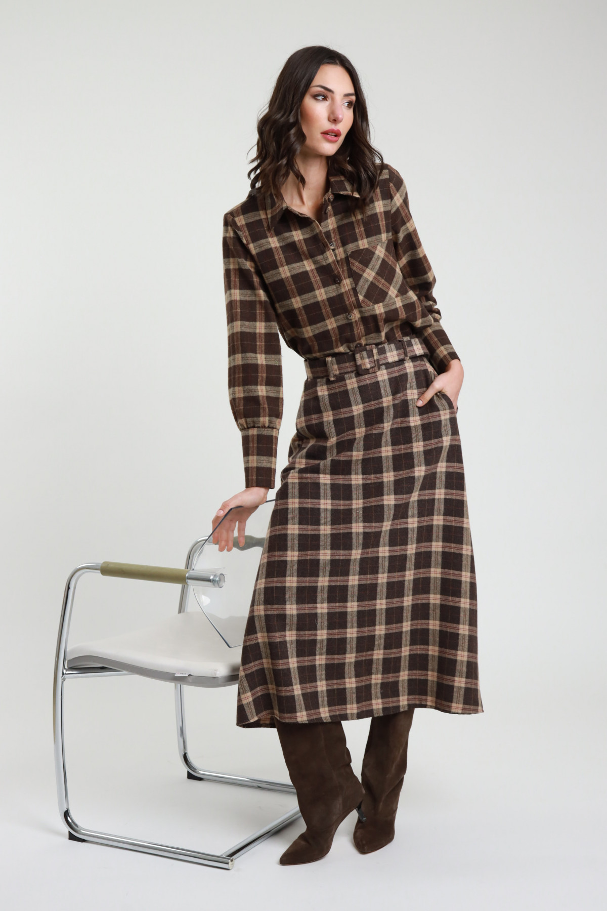 Gonna Lunga in Fantasia Check con Cintura in Vita.