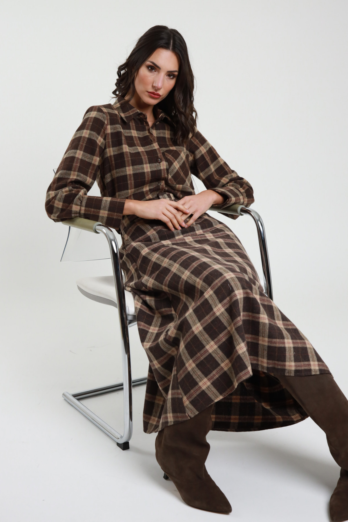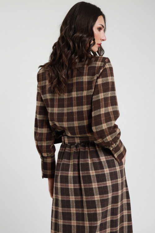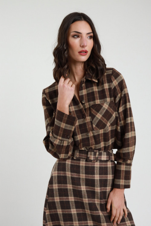 Camicia Crop in Fantasia Check con Spalline Imbottite.