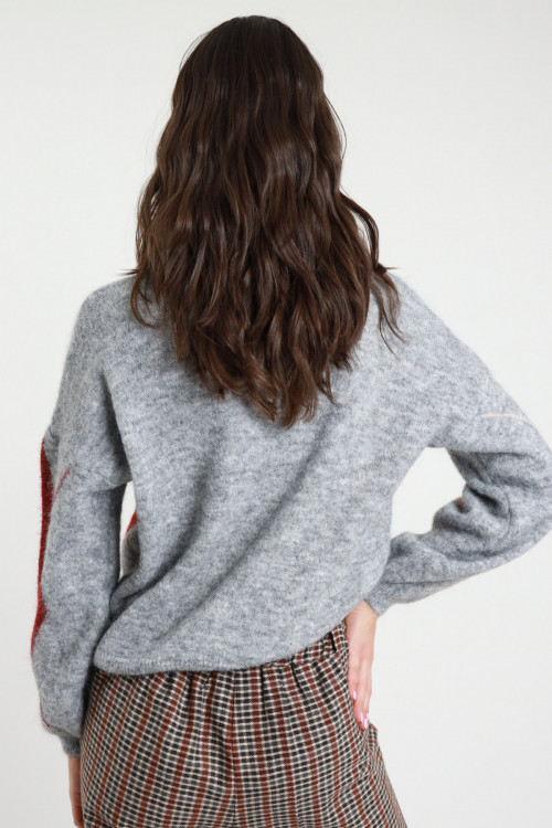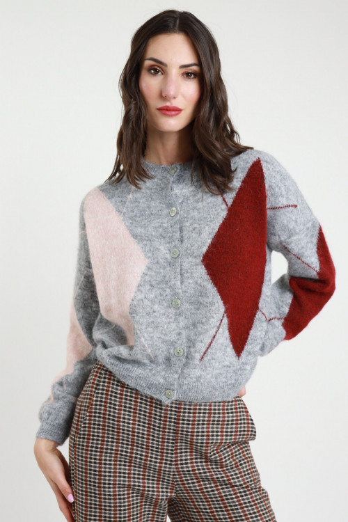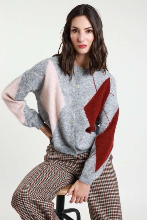 Cardigan Over in Pied De Poule con Bordi Tinta Unita.