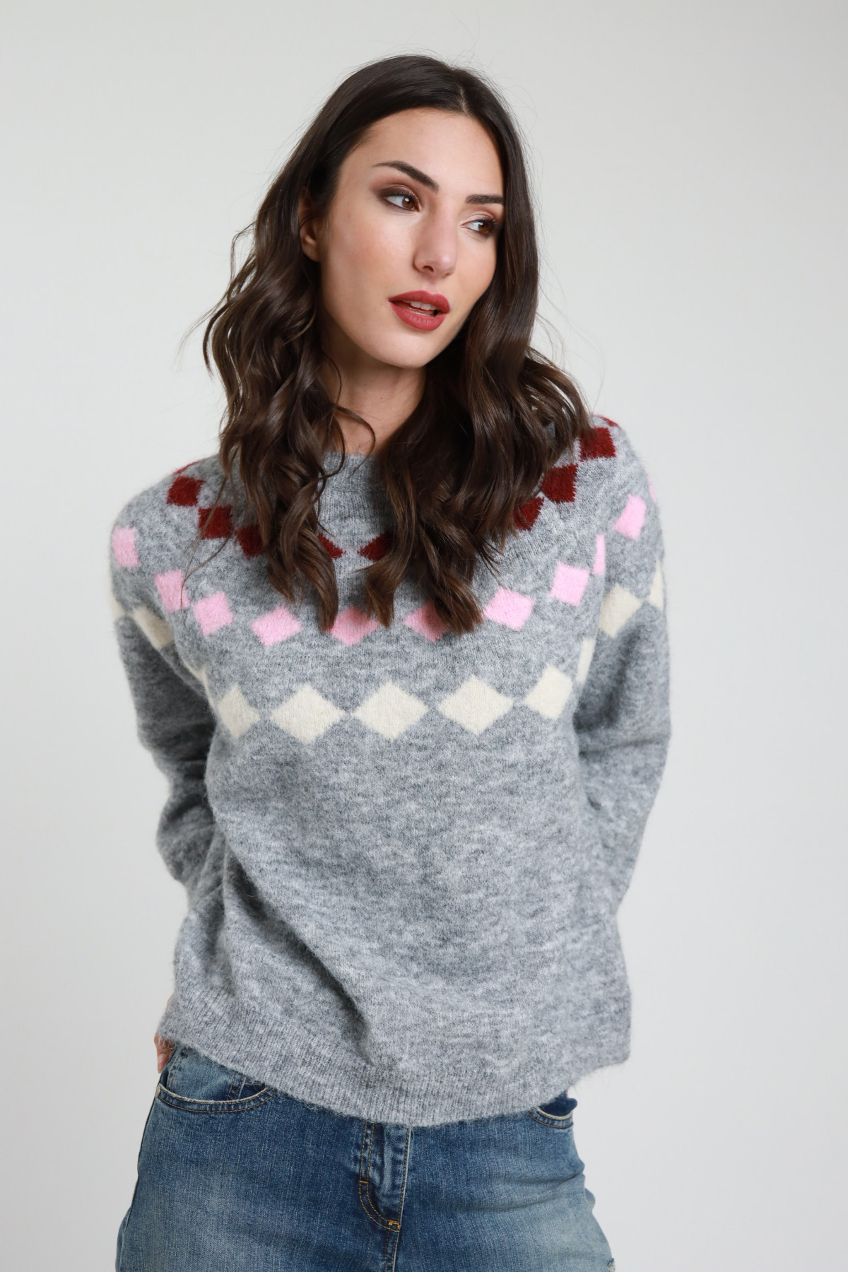 Maglia Raglan con Fantasia Rombi Colorati.