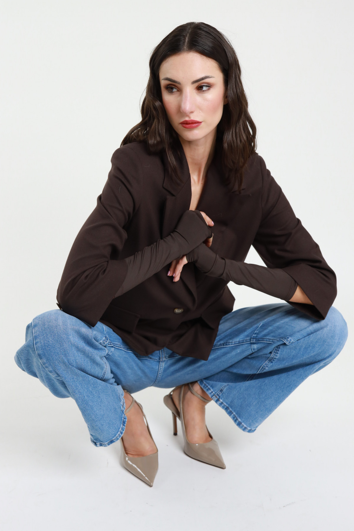 Blazer Monopetto con Manicotti, Tasche Filetto con Pattina.