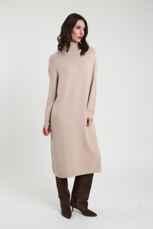 Long dress in cashmere fantasy with V -neck, elastic and waist belt, balloon sleeves in transparency. 100%PL