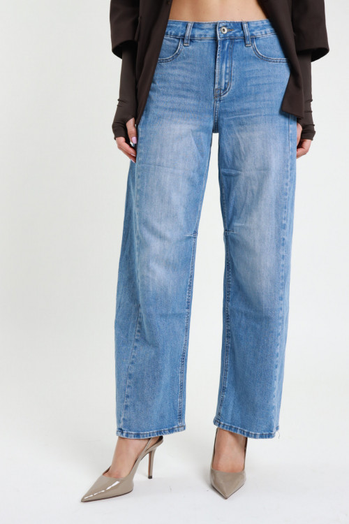 Denim Con Stampa Floccata, Taglio Ad Ovetto Con Risvolto, Tasche A Portafoglio e Cinturina In Vita.