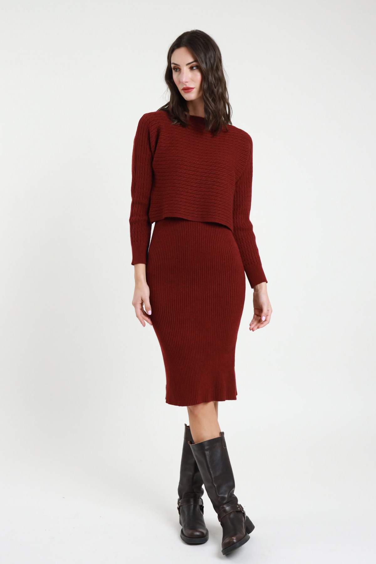 Completo in Maglia Composto da Abito Midi + Maglioncino Crop.