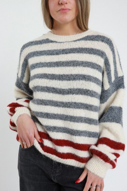Maglia Multicolor Scollo a Barchetta con Inserti a Costine.
