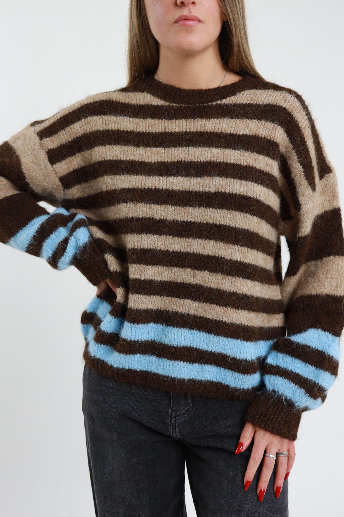 Maglione Girocollo Con Righe Bicolor. 59%rPet 21%pa 11%pl 8%wo 1%ea