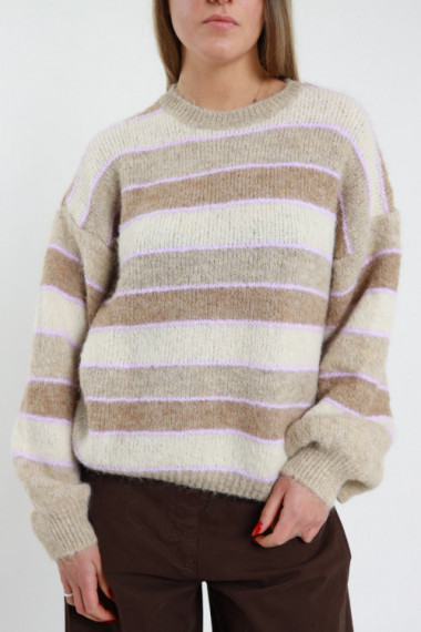 Maglioncino Girocollo Rigato Over Con Maniche A Sbuffo. 59%rPet 21%pa 11%pl 8%wo 1%ea
