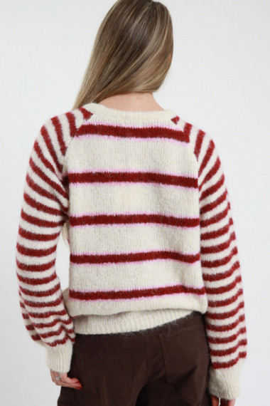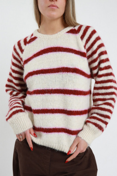 Maglia Girocollo Rigato Con Scollo Ampio e Righe Diversificate Sulle Maniche e Sul Busto. Regular Fit.