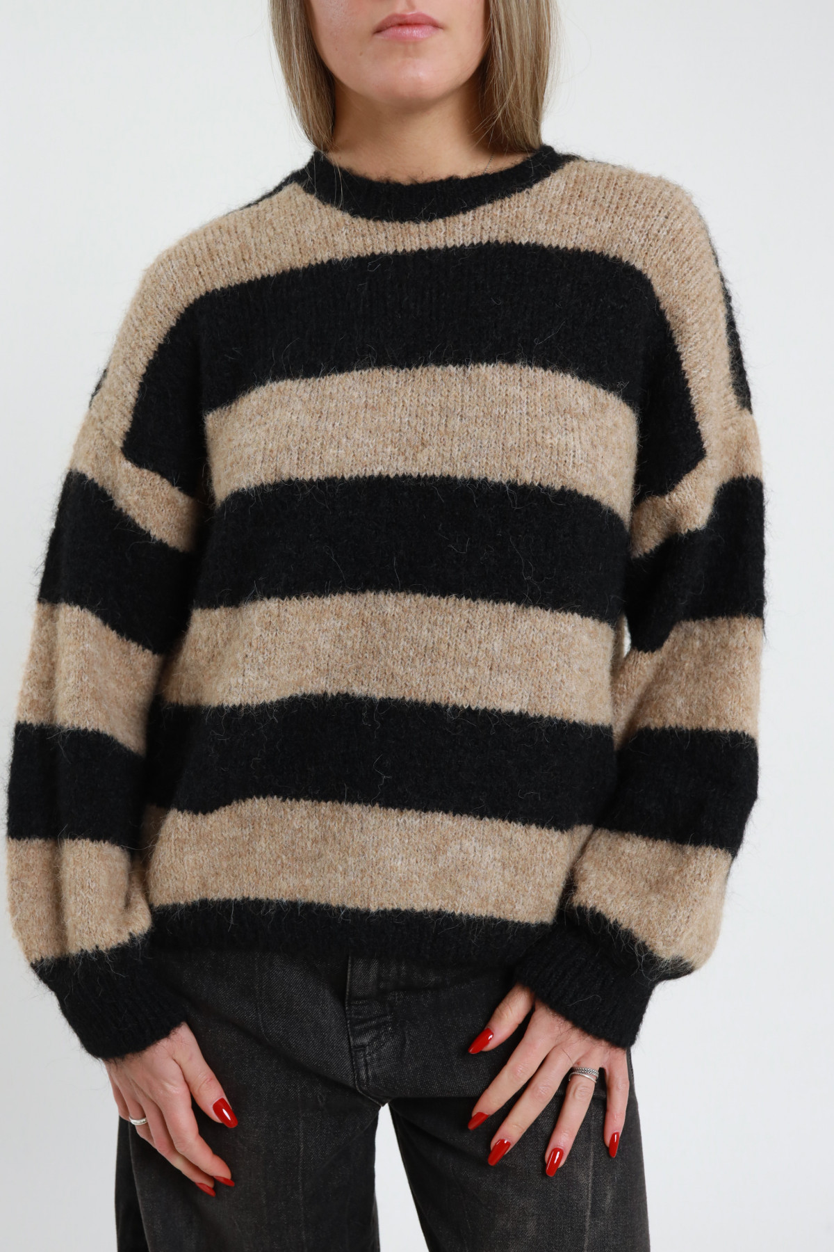 Maglia Girocollo Righe Larghe, Taglio Over.