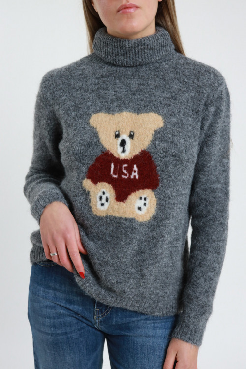 Maglioncino Ciclista con Ricamo Orsetto. Regular Fit.