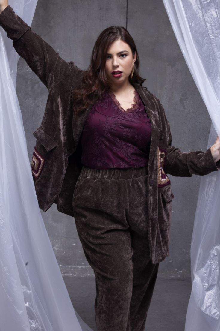Giacca Monobottone Over in Velluto con Ricami e Strass - Linea Curvy Susy Star.